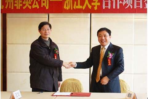 2009年3月8日,杭州菲英公司和浙江大学合作项目签约仪式在杭州香格里拉饭店隆重举行。中共浙江大学机械与能源工程学院党委书记李伟、余杭区科技局局长马伟忠、中共余杭区仓前镇党委书记金国平、杭州菲英公司董事长章志华等领导和专家参加签约仪式并发表了重要讲话。此次签约合作项目是《环保型鼓式刹车片自动化生产线技术研制》,总投资4000万元。该项目的成功运作,填补了国内摩擦材料行业在该领域自动化的空白,标志着杭州菲英公司向高新技术、高标准化迈开了新的一步。