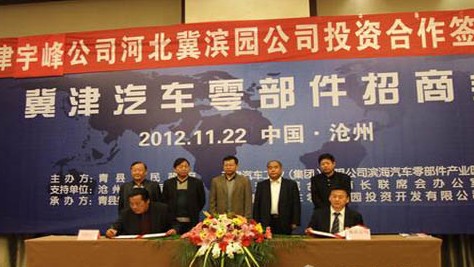 天津市人民政府交流合作办公室副主任、环渤海区域合作市长联席办公室主任孙虎军在致辞中指出:此次天津滨海汽车零部件产业园主动走出天津,在沧州市开辟新的发展空间,复制和推广产业园模式,建设河北滨海汽车零部件产业园,将合作各方资金优势、技术优势、土地优势结合起来,实现了多方联合、跨区域优势资源整合,产生了积极的示范带动作用和产业链拉动效应,成就了两市合作的又一个新亮点。孙虎军表示,以实际行动贯彻落实好十八大精神,为两市之间加强合作,实现互利共赢做出新的贡献。