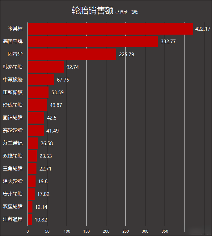 第一季度中国轮胎企业的销售额更是出现了显著增长,中策橡胶依旧是领衔其他国产轮胎企业排在第一位,销售收入同比去年增长了23.45%。