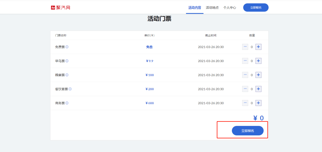本次会议共设有免费票,早鸟票、晚宴票、餐饮套票、商务票五种票务类型,小伙伴们可根据自身需要,填写相关信息选票购票。