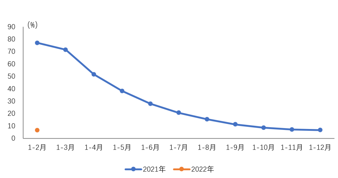 2022年1-2月汽车制造业营业收入同比呈小幅增长