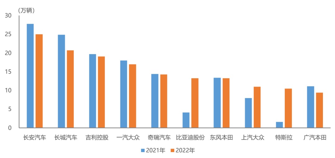 据中国汽车工业协会统计分析,2022年一季度,销量排名前十位的SUV生产企业共销售153.6万辆,占SUV销售总量的57.6%。