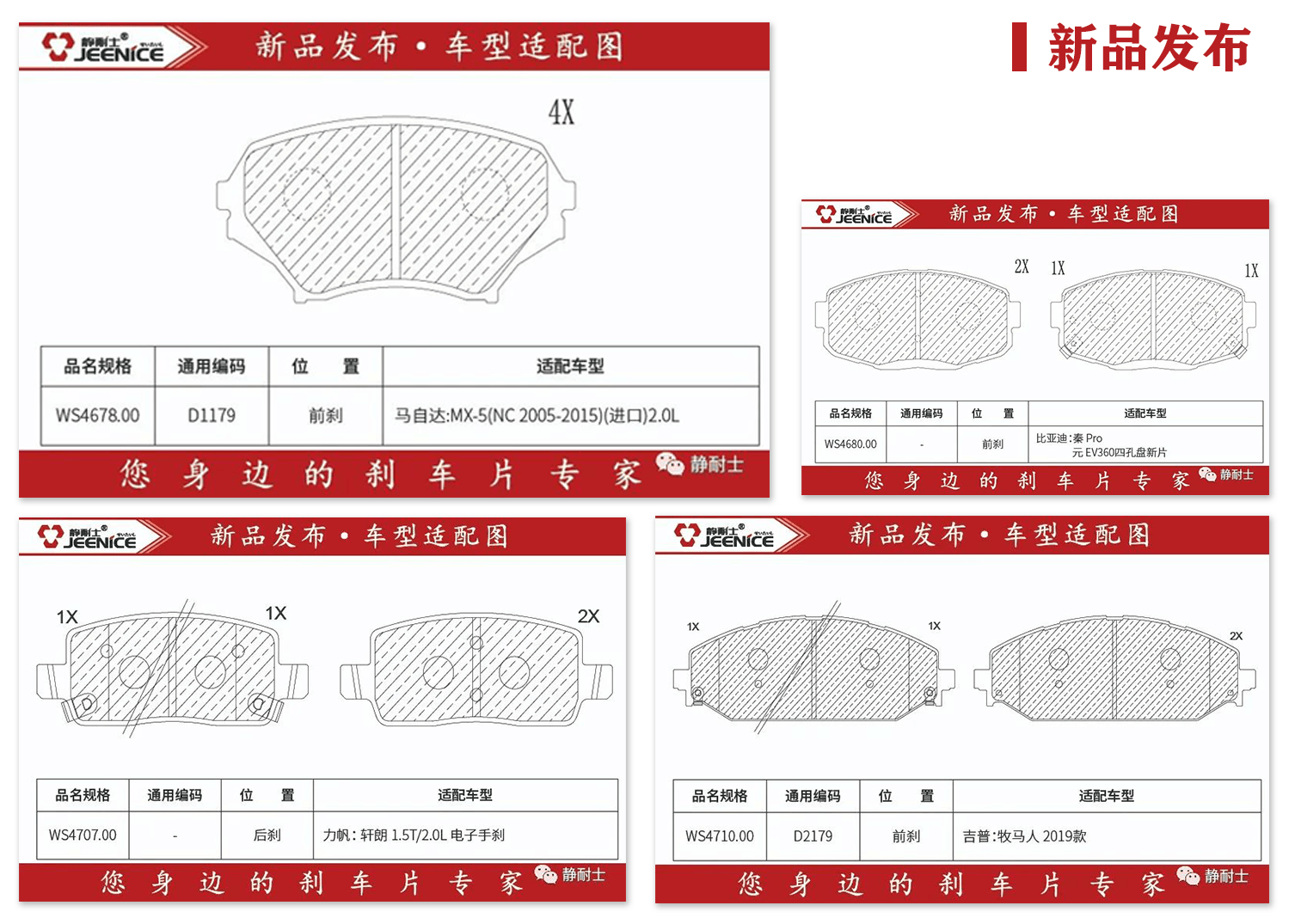 本期为大家带来的新品主要涉及:福特:全顺新世代(V348)后轮双胎;宝马:Z4G292020款 ; 现代:索纳塔+代15T2.0T;吉利:豪越2020款、比亚迪:汉EV 普通卡钳等车型前刹后刹等;金龙:凯锐浩克前刹等。