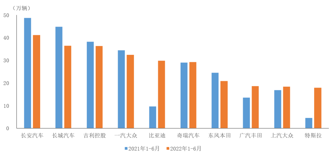 2022年1-6月前十家SUV生产企业销售情况简析