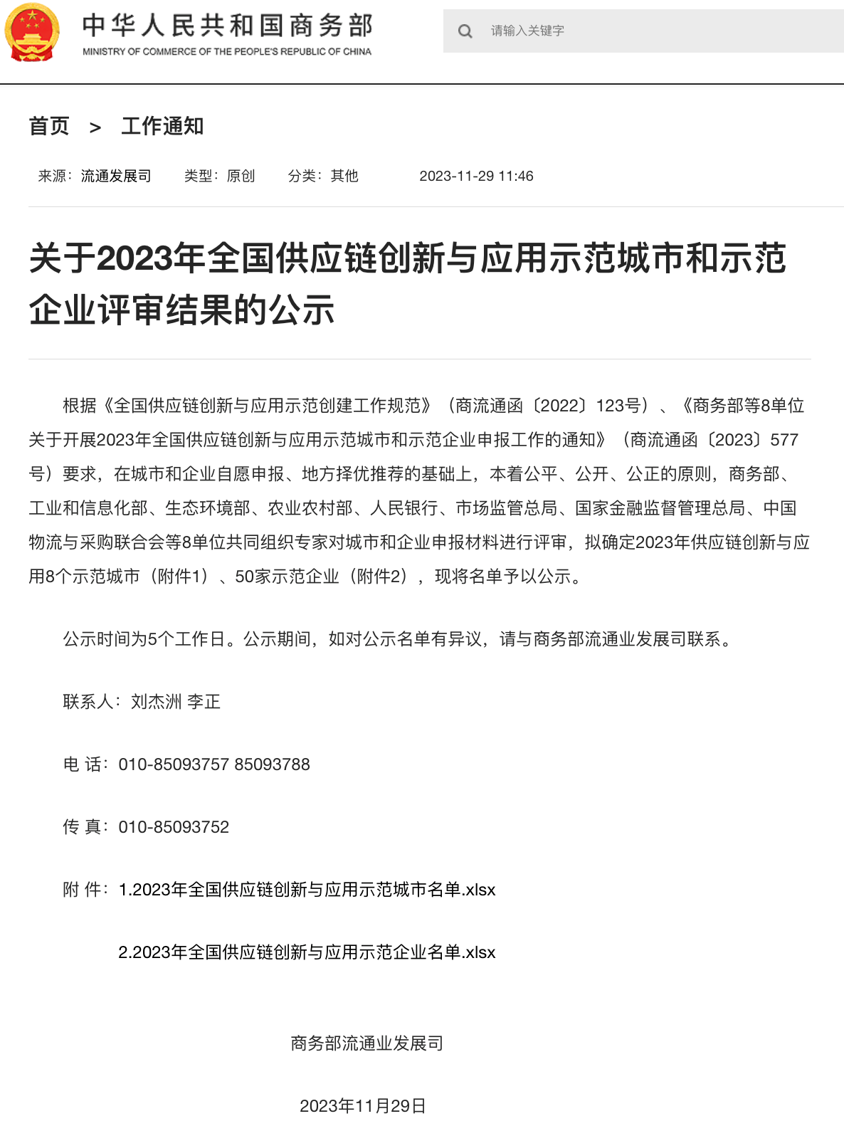 据悉,此次评选是国家层面巩固和加强全球产业链供应链合作、维护产业链供应链安全稳定的决策部署。“示范企业”位居供应链核心位置,协同水平高、资源整合能力强、重视供应链创新与应用。