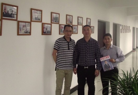 图中为博尔德汽车零部件有限公司总经理李良松,图左为亮歌喇叭董事长褚建林,图中为本网作者付小军