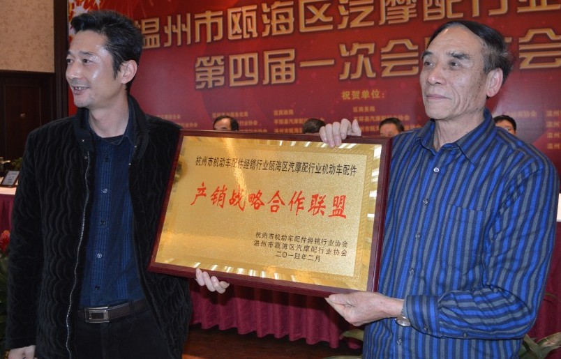 大会由本协会常务副会长、冠盛集团董事长周家儒主持。大会主席台就坐的领导有区委常委副区长周一富、区委常委统战部部长叶军、区人大副主任麻贤生、区政协副主席姜化钓、区工商联党组书记叶冠栋、区经信局局长叶衍国、区商务局局长许建宇、区民政局副局长刘速建、会长陈光爱、协会常务副会长张国盛、周家儒等。杭州市机动车配件经销协会秘书长吴峻、副会长朱和明、潘玉华;杭州车蚂蚁公司CEO李立恒;中国汽车配件人才网总经理付小军;温州市汽摩配行业协会秘书长何洪信;温州市机械联合会秘书长王成淼;瑞安汽摩配行业协会秘书长章金木等嘉宾到会祝贺,同时大会收到了中国汽车后市场总会等30家同仁及兄弟协会特地发来的贺电贺信。![]()