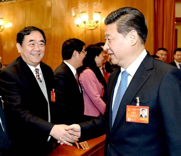 习近平总书记及其他中央政治局常委、中央政治局委员、国务委员等党和国家领导人亲切看望“两会”代表并握手慰问