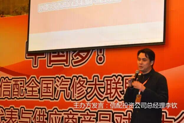 大会首先是李钦总经理代表主办方发言。李钦介绍到,信配全国汽修大联盟由信配投资公司发起,联合杭州、温州、台州、吴江、张家港、北京各地的汽修联盟代表,以及提供配件体系的杭州万拓马汽配有限公司共同组织而成,经半年多集合各路专家研讨及行业内范围实践可行性确认,本着严谨、切实、落地的态度,旨在力求打造全国最大的整合汽修厂、供应商、供货渠道及金融资本、移动互联的跨界整合联盟平台。此次对接会是继2014年12月11日召开的第一次启动大会引起行业不同凡响后,许多优质的供应商企业加入到采购联盟,许多修理厂也纷纷加入到修理厂联盟体系后召开的第二次大会,此次大会就是增进了解,扩大供应采购体系的大会。