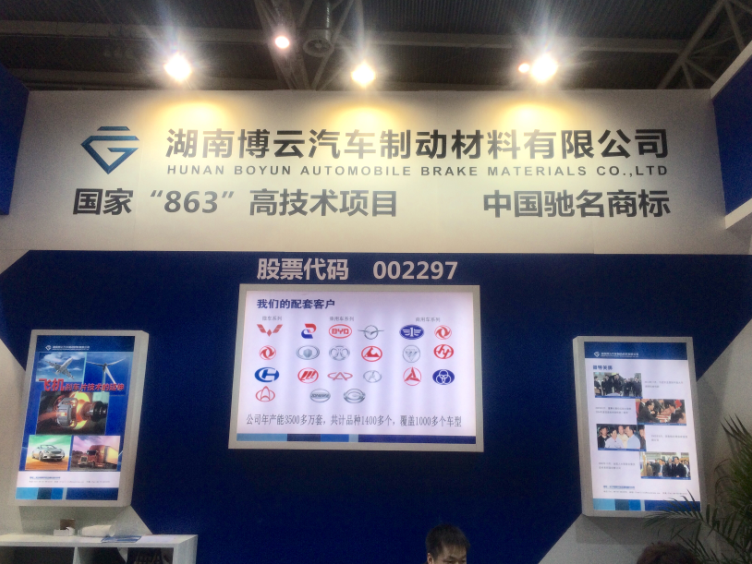 湖南博云在创立之初,就坚定不移以品质为中心,技术为先锋,生产出精品的原则,为车主提供安全、舒适的刹车片为宗旨,从而形成了具有完全自主知识产权的产品系列。湖南博云建立了完整的质量管理体系,通过了ISO9001-2000质量管理体系和GJB9001A-2001质量管理体系认证;如今的博云年产3500多万套刹车片,共计品种1400多个,覆盖1000多个车型,成功为比亚迪、奇瑞、海马、北汽、猎豹、力帆等11家乘用车;一汽、东风、福田、三一等6家商用车;以及柳州五菱、长安、昌河、东风4家微型车配套。