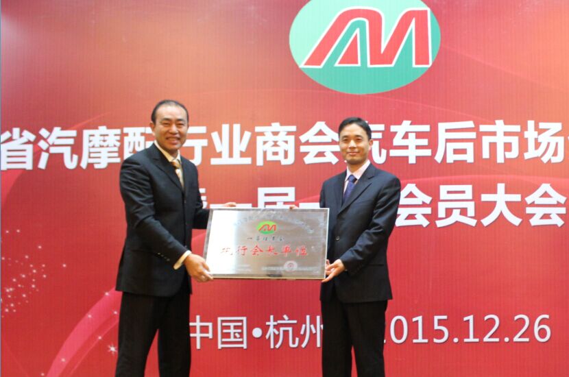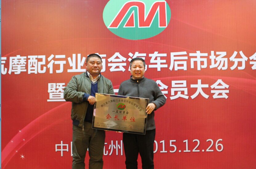 浙江元通汽车零部件有限公司总经理申屠彬彬担任首届执行会长(右)
