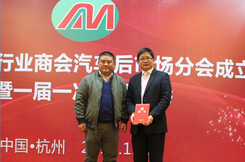 大会选举浙江省汽摩配行业商会执行秘书长丰斌华担任浙江省汽摩配行业商会汽车后市场分会秘书长,并由浙江省汽摩配行业商会汽车后市场分会会长郑坚鑫颁发聘书。