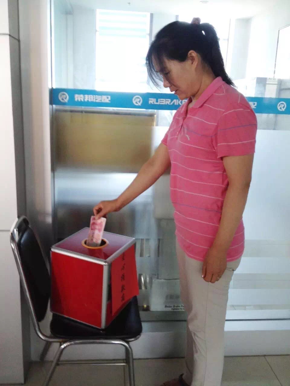 2016年7月20日山东荣邦汽配有限公司副总经理李梅倡议该司员工做一次募捐,救助西营吕道口村的一个四岁的小女孩叫吕梓涵。在吕梓涵两个月时父母因车祸丧生,肇事车辆逃逸至今未归案,更没拿到一分赔偿。吕梓涵现跟爷爷奶奶一起生活,没有其他经济来源,靠种地为生。