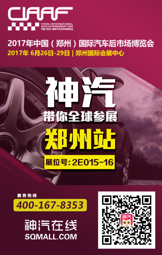 6月26-29日,“2017中国(郑州)国际汽车后市场博览会”(CIAAF郑州展)即将在郑州国际会展中心隆重开幕!“据悉,汽车后市场知名汽配电商平台神汽在线将携手汇友汽配、江苏金丰汽车用品、东莞续辉电子、浙江道成汽车部件、格丽森旗舰店、车漆卫士等平台优质商家共同出席,与商家共享展会流量福利。