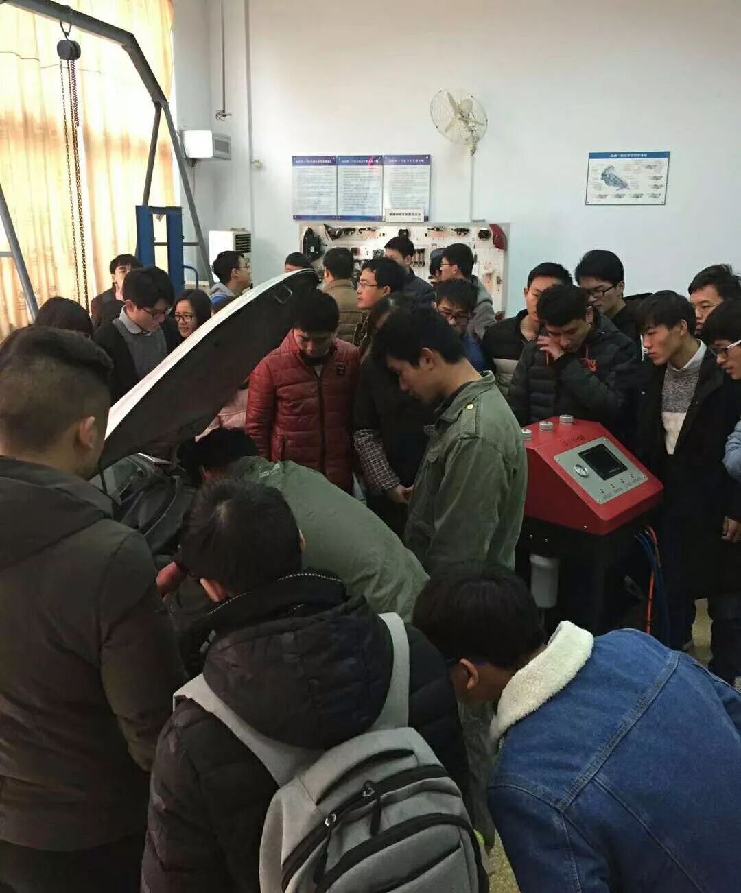 在我们王经理的讲解下,理工学院的老师也为之动容,结合课程与机械热能,汽车发动机构造,汽车运行原理,机械力学,为同学们补充了生活中遇到的问题及汽车发动机问题判断方法啊。