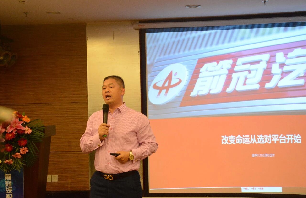 箭冠汽配企业董事长张国京先生发表演讲:《改变命运从选对平台开始》