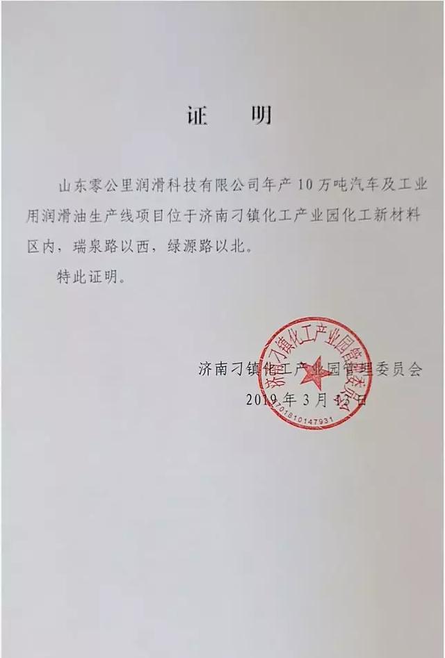 零公里集团第三工厂,位于济南市章丘区刁镇化工产业园,已经在建设中,零公里润滑油将不断用行动来履行自己的义务,建设的新厂,生产高端车用润滑油、传动系统用油、工业用油等系列产品,一期设计产能达到10万吨。