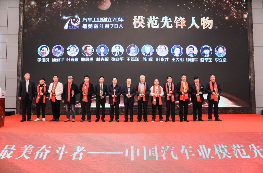 “汽车工业创立70年 最美奋斗者70人”中国汽车业模范先锋人物表彰大会召开,中汽联执行会长、中国汽车后市场研究院理事长乔永锋宣读了《关于授予王笃洋、张晓平、林先燎等70位同志为“中国汽车业模范先锋人物”的决定》,在盛大的表彰大会仪式上,全国工商联副主席程路、中国机械工业联合会执行副会长张克林等领导和嘉宾为70位模范先锋人物颁授奖杯和证书。汽车行业要认真学习习近平总书记在“最美奋斗者”表彰大会上强调,要广泛宣传“最美奋斗者”的先进事迹,传承弘扬爱国奋斗精神,奏响新中国奋斗交响曲,高唱新时代奋斗者之歌,为实现中华民族伟大复兴的中国梦凝聚起强大精神力量。