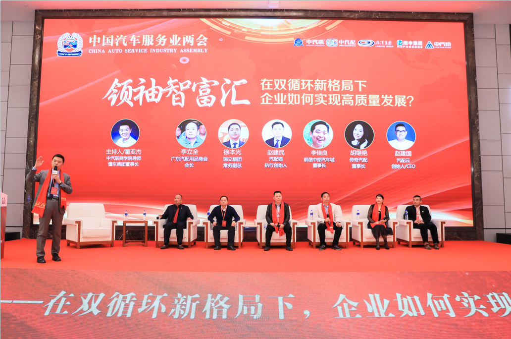 党中央提出构建双循环新发展格局,是根据我国发展阶段环境、条件变化,特别是基于我国比较优势变化,审时度势做出的重大决策,是事关全局的系统性、深层次改革,是立足当前、着眼长远的战略谋划。为此,举行了“领袖智富汇——在双循环新格局下,企业如何实现高质量发展?”,巅峰对话由中汽联商学院导师、懂车集团董事长董亚杰主持,广东汽配用品商会会长李立全、瑞立集团副总裁徐本光、湖北航信董事长李佳良、汽配猫执行创始人赵建民、传奇汽车配件董事长胡继艳、汽配云创始人,CEO赵建国等六位行业大咖参与对话,为大家奉献了一场思想盛宴,获得了阵阵掌声。