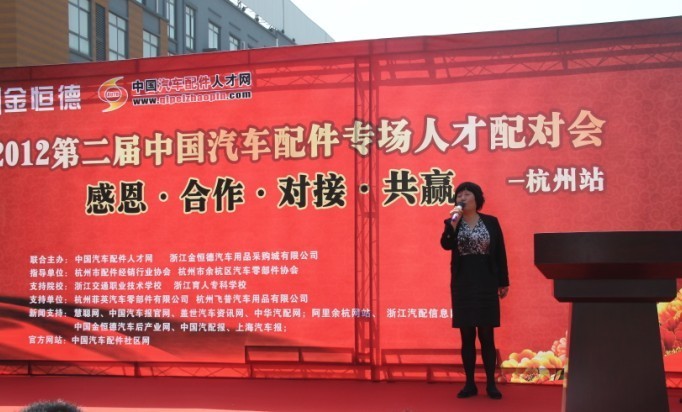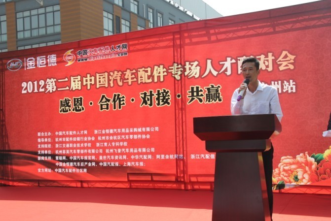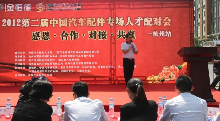 昨日,由中国汽车配件社区网、浙江金恒德汽配城联合主办的2012第二届中国汽车配件专场人才配对会——杭州站在金恒德汽配城隆重举行,此次招聘会围绕“感恩·合作·对接·共赢”主题展开,并且很荣幸邀请到众多嘉宾出席此次活动,并现场分享了人才招聘看法与经验。