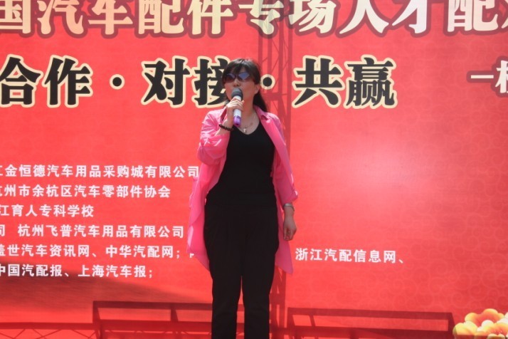 随后浙江省汽摩配行业商会常务副秘书长兼杭州市配件经销行业协会副会长潘玉华致辞,她谈到中国汽车配件人才网做出的努力,从“感恩、合作、对接、共赢”就为企业做了一件实事, 并预祝此次活动顺利进行。