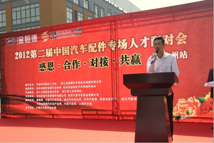 此次配对会由中国汽车配件人才网付小军总经理担任主持,参会嘉宾有:杭州市机动车管理局配件处副处长兼杭州配件经销行业协会秘书长吴峻、浙江省汽摩配行业商会常务副秘书长兼杭州市配件经销行业协会副会长潘玉华、杭州市余杭区汽车零部件协会秘书长胡锡巡、金恒德国际物流集团有限公司总经理助理兼人力资源部部长杨传发、浙江育人专修学院就业办老师彭敏、浙江省交通学院成教技