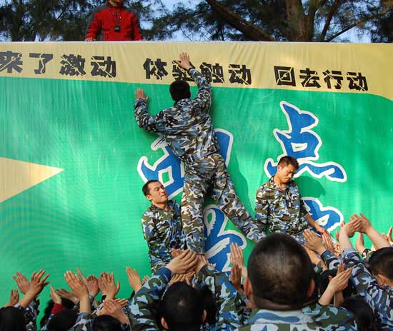 下午,全体与会人员齐赴深圳,开始为期两天的“总裁执行特训营”户外拓展训练。两天期间,我们是战友,我们是兄弟。当我们共同齐心协力参与到各项游戏过程中,我们的智慧在汇聚中得到升华,我们的感情在交流中得到积淀。那夜,篝火旁,我们像一家人一样欢快的起舞,高声的放歌。欢笑声,响彻夜空,散落下来后,化成春雨,滋润我们彼此的心田。当我们最后的战役打响,是谁站立在谁的肩膀上;是谁紧紧拉着谁的双手誓不放弃;是谁的眼泪滴在谁的脸颊上。当最后一名战友被众人拉上毕业墙时,我们沸腾了,我们哭了,我们胜利了。我们荣辱与共,我们生死并肩,我们不离不弃,我们攻坚克难。当我们紧紧握着彼此的双手,闭上双眼,我们感受到一种力量和一种信念。我们相信,这场战役转移到市场上,只要坚持“我们为成功而生,我们为荣誉而战”的信念,只要敢于亮剑,必剑锋所指,所向披靡。