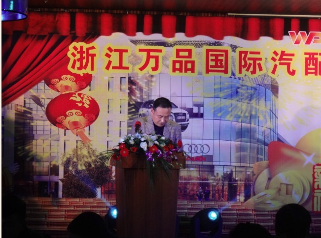 随后浙江万品实业有限公司董事长姚加清表达了开发区领导、部队政委及各级领导给予浙江万品国际汽配商贸城的关怀及指导,同时也感谢今晚到会的500多个商户,浙江万品国际汽配商贸城将继续秉承公司“以诚立业、以信立市、以实求成、以信取人”的经营管理理念,积极培育核心竞争力,实施文化、人才、品牌三大战略,大胆开拓、踏实创业、发展员工、服务顾客,实现万品事业稳健、和谐、持续发展,积极实践着“为顾客创造价值、对社会承担责任、与员工分享成果”的公司愿景,着力把万品打造成百世传承的世界一流品牌。