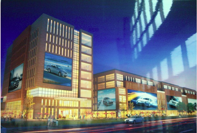 图为:浙江万品国际汽配商贸城鸟瞰图 图为:浙江万品国际汽配商贸城南立面图