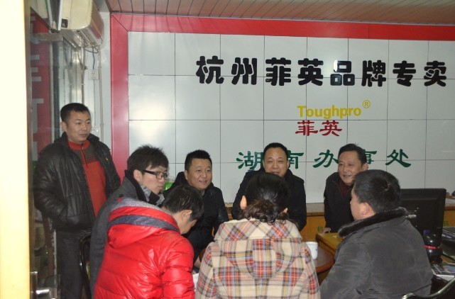 伴随着菲英春风之旅长沙站的结束,下一站本应去武汉,因为武汉这几天天气骤冷有雨雪,我们通过远程可视电话与武汉经销商做了新年问候及经营过程中的交流,武汉经销商也表达对章志华董事长及管理层领导关心的一种感谢,也提出一些建设性的建议得到相应解决,表示2013年会将菲英旗下品牌产品做的更好。