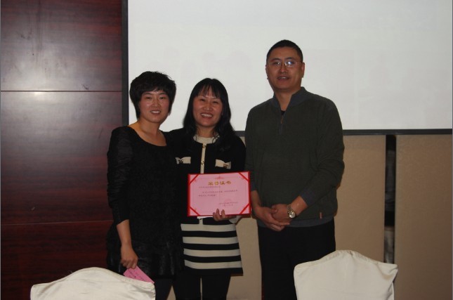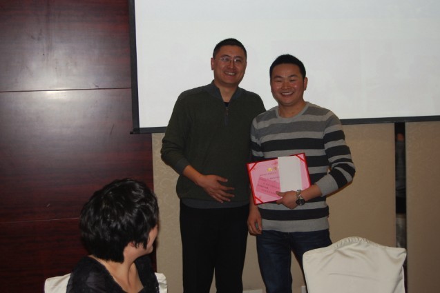 图为:上海久真汽车配件有限公司总经理干斌为销售第二名:北京美众嘉业汽配颁奖