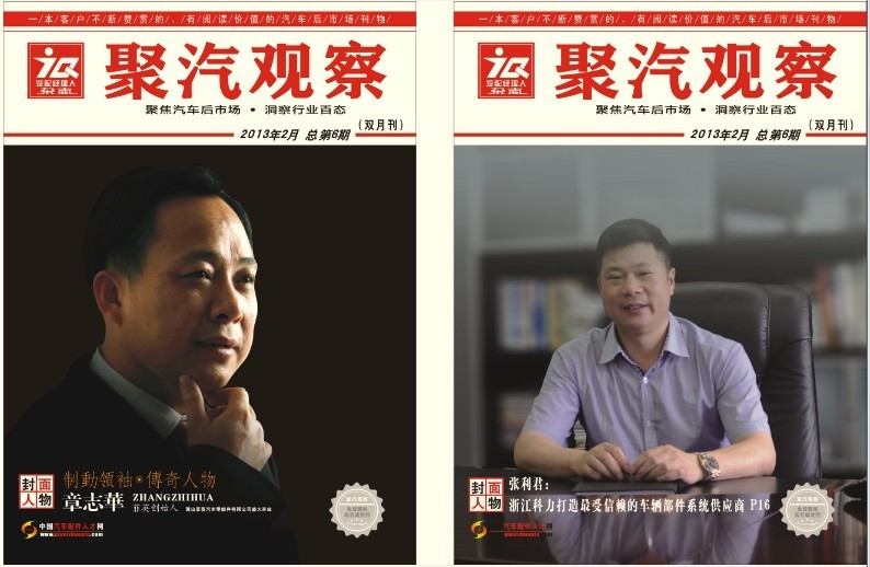 2、《聚汽观察》是集“中国汽车配件社区网”、“中国汽车配件人才网”双网合一的刊物,定位帮助零部件企业更加看透市场信息,贴近市场需求;了解行业最新热点资讯,优秀企业管理;关注行业同类新品动态,技术文献;同时也为企业呈现管理文章之精萃,人力资源管理之经验。发行二年来,全刊八大栏目,深受行业经理人追捧。据客户之建议,2013年将由原来季刊调整为双月刊,更快以飨更多读者。