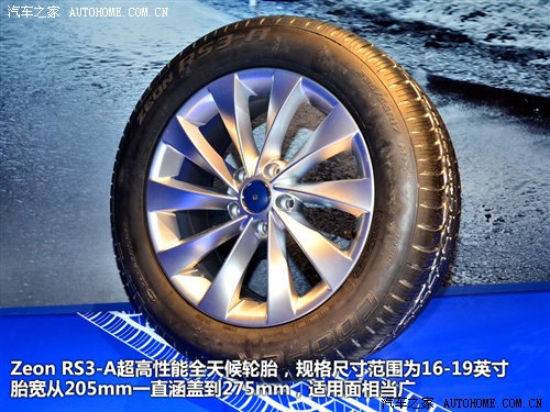 第二款轮胎则是固铂Zeon RS3-A驭行轮胎,这款轮胎和前面提到的固铂Zeon RS3-S驭动一样,同为固铂家族中的高性能轮胎,不同的是其适用的范围更宽广,规格尺寸范围从16-19英寸,扁平率从40-55不等,胎面宽度从205一直涵盖到了275mm,可以说是一款能适用于绝大部分车型的全天候高性能轮胎。