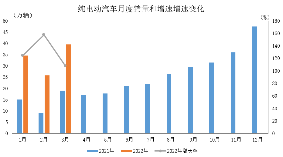 2022年3月,产销分别达到46.5万辆和48.4万辆,环比增长25.4%和43.9%,同比增长均为1.1倍,市场占有率达到21.7%。