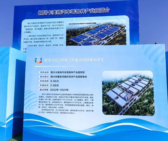 铜川卡美特汽车零部件产业园位于铜川市耀州区董家河循环经济产业园内,规划面积1000亩,是西安骏驰汽车零部件产业园发展有限责任公司积极响应铜川市“陕西制造、铜川配套”的城市定位,围绕我省汽车工业发展,依托渭北工业带,推动汽车零部件产业发展的一个重要承载区,是推动汽车零部件产业梯度布局的一项重要投资。