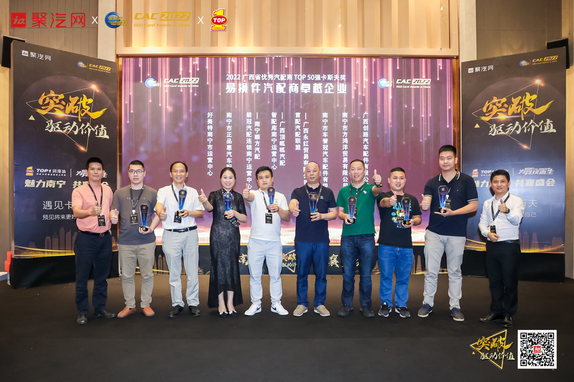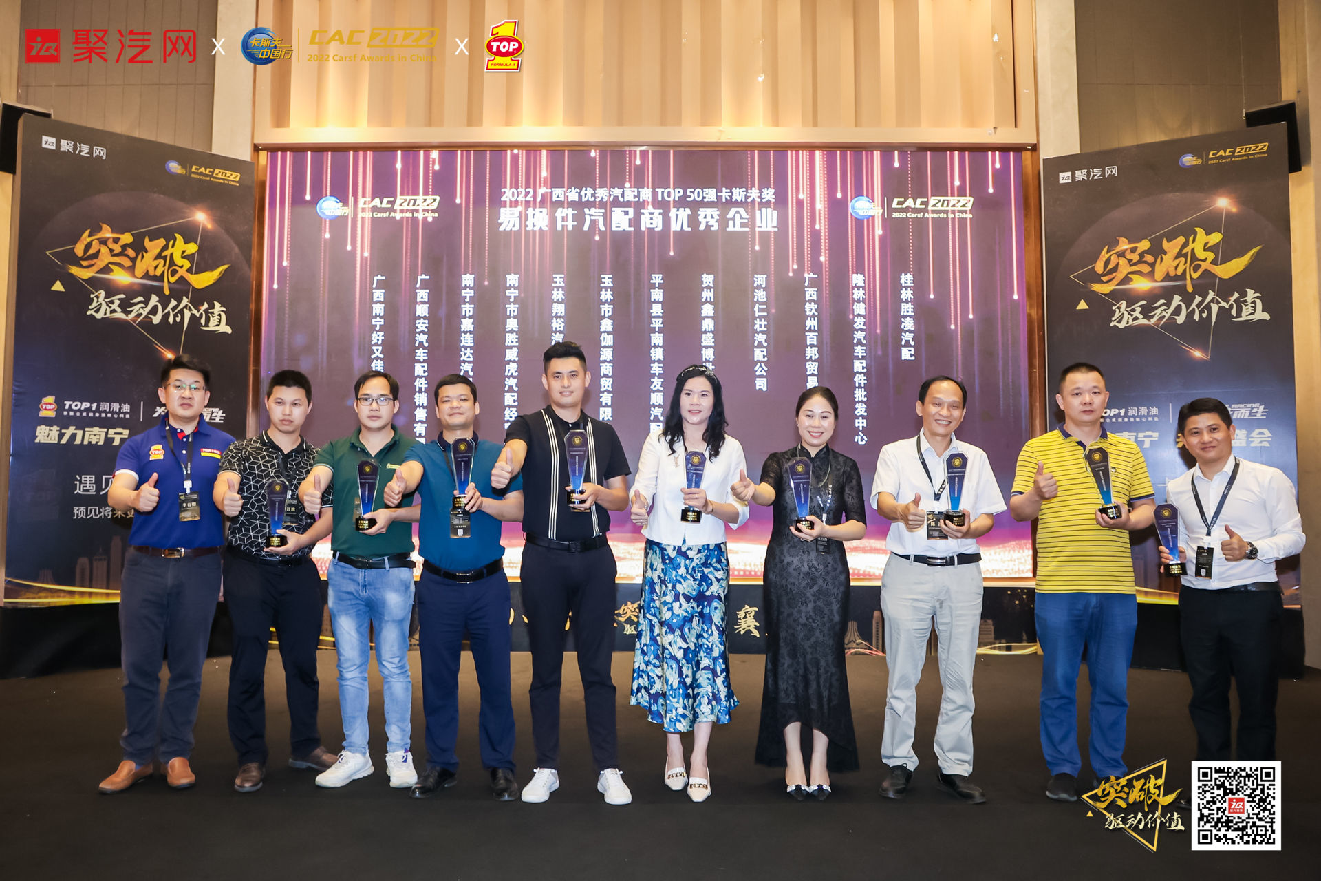 卡斯夫奖作为汽车后市场产业一个颇具含金量的重要奖项,立足中国,服务全球,目的在于奖励过去的一年,在汽车设计、汽车装配、配件研发设计、配件制造、配件经销、汽车维修、数据软件及培训服务等领域为汽车安全(car safety)做出卓越贡献的汽车后市场企业和个人从业者们。已在全国各省评选出优秀汽配商,汽修企业2000余家,深受行业关注及推崇。本次颁奖盛典共奖励10家“2022广西车型件汽配商卓越奖企业”、23家“2022广西易损件汽配商优秀奖企业”、8家“2022广西易损件汽配商卓越奖企业”、3家“2022广西易损件汽配商杰出奖企业”、2家“2022广西修配融合示范先进企业”。