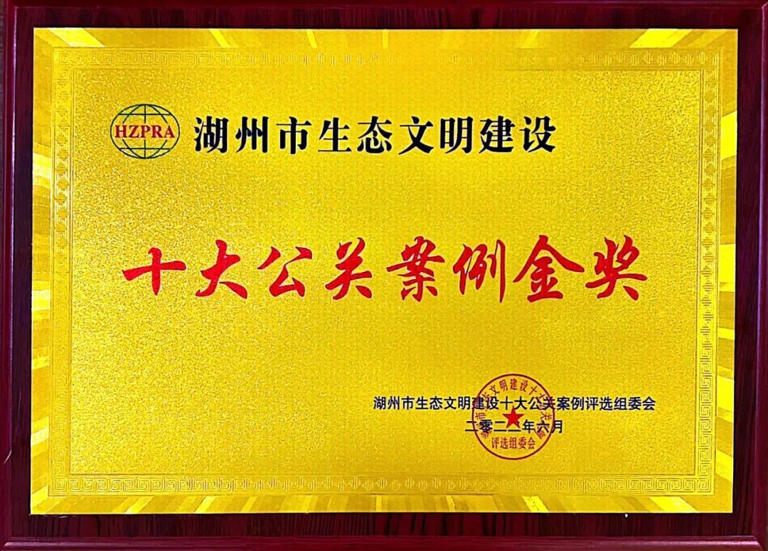 由市委生态文明办、市生态环境局、市国资委、市新闻传媒中心、市公共关系协会联合开展的“湖州市生态文明建设十大公关案例”评选活动,为期三个月,经评审组专家初评、终评和公众网络投票评选,确定了十大公关案例。由天能和湖州市生态环境局长兴分局报送的《创新发展绿色能源,打造天能“绿色智造”品牌》案例,获得了金奖。