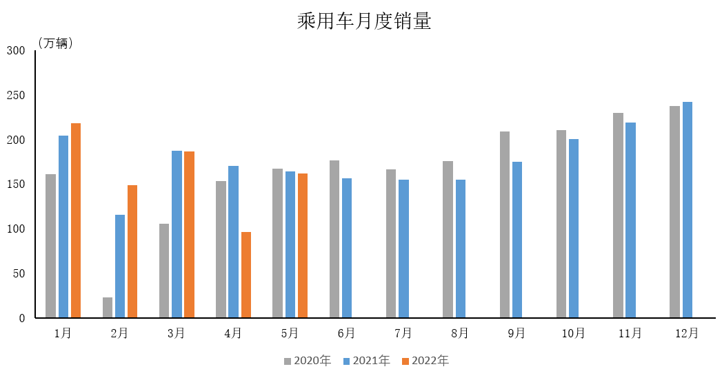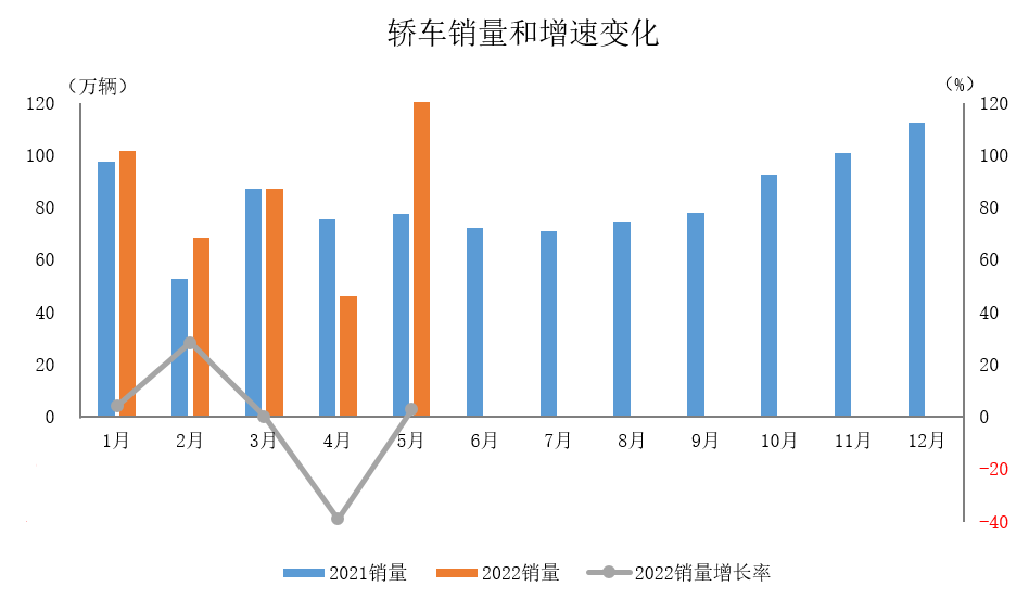 2022年1-5月,乘用车产销分别完成819.6万辆和813.3万辆,同比分别下降1.1%和3.6%,降幅比1-4月略有收窄。
