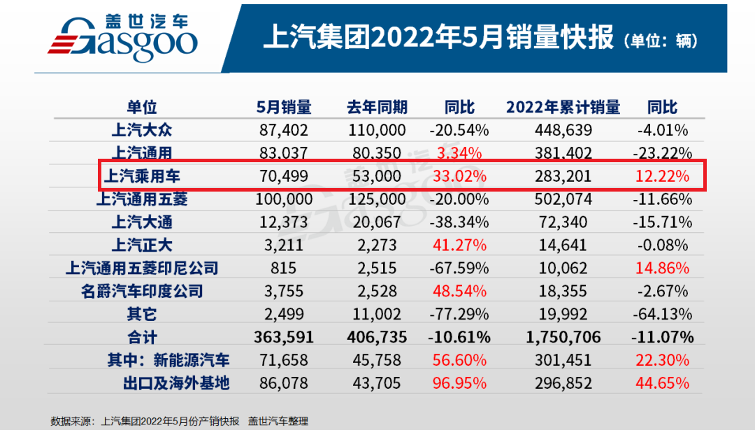 随着上海疫情防控形势好转,5月上海汽车业复工复产率显著提升。在此背景下,上汽集团5月产销量也走出了4月的低迷状态,单月销量达到36.4万辆,环比增长1.2倍。通过从产品、研发、营销等多方面发力,上汽乘用车推进复工复产交出了一份亮眼的成绩单。刚刚过去的5月,上汽乘用车实现月销量破7万辆,同比增长33.02%。