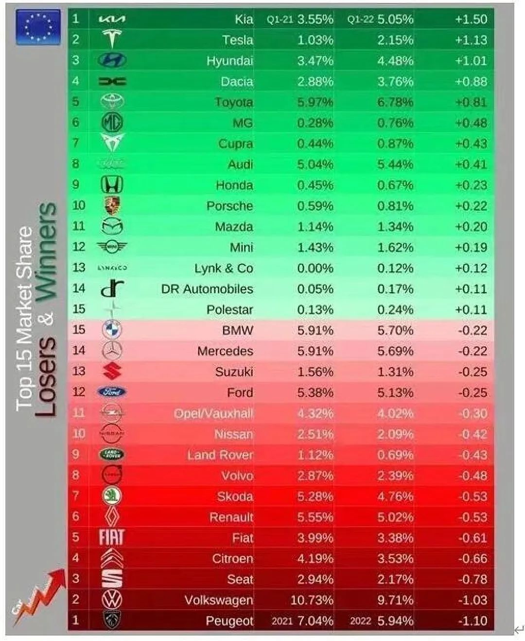 从海外市场看,上汽乘用车旗下多款新能源产品在全球持续圈粉。据悉,目前,上汽乘用车旗下产品已远销全球80多个国家和地区。第一季度全球最新销量数据显示,上汽乘用车旗下MG品牌打入澳大利亚、新西兰、沙特、卡塔尔等18个国家单一品牌前10。同时,根据欧洲汽车协会公布2022年一季度欧洲汽车销量T0P60榜单,上汽乘用车MG品牌销量达2.1万台,较同期翻了近3倍,拿下0.76%的市场份额,并超越路虎、本田等国际大牌,进入增幅榜第6位,创下中国车企在欧洲市场的最好成绩。