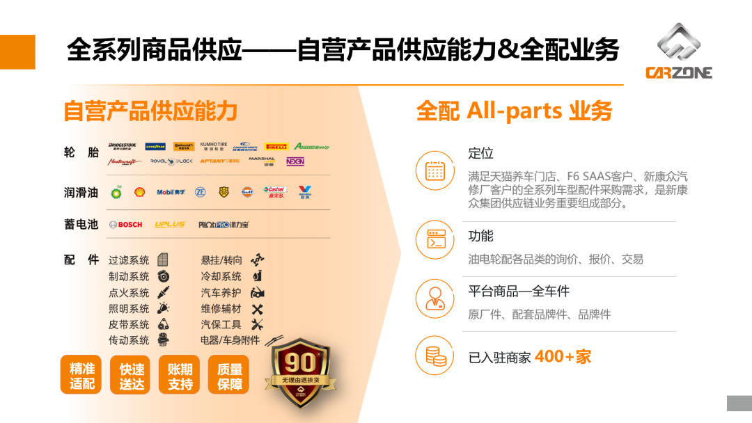 国际知名品牌汽配供应商产品直供和优质的自控品牌供应,30个几千平方的省中心仓、10多亿的库存储备,全国10万+家合作维修企业信任品牌.....这些你都能享受!