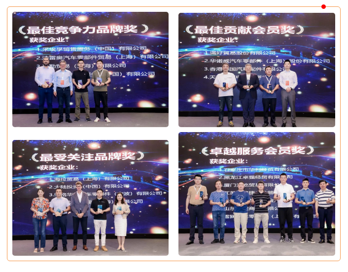 在愉悦的晚宴中,同时迎来振奋人心的时刻——颁奖环节,第一轮颁发了“最佳竞争力品牌奖”、“最佳贡献会员奖”、“最受关注品牌奖”、“卓越服务会员奖”共19个奖杯。