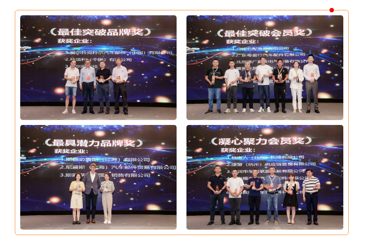 在进行稍作休息后,迎来了第二轮颁奖,分别颁发了“最佳突破品牌奖”、“最佳突破会员奖”、“最佳突破会员奖”、“凝心聚力会员奖”共18个奖杯。