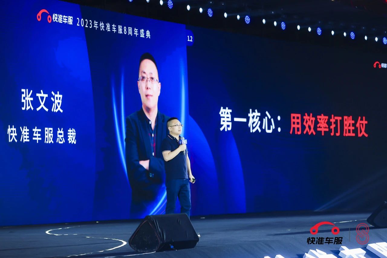 在快准车服总裁张文波先生主题为“致良知,逆增长”的主旨分享中,快准车服八周年盛会正式揭开序幕。