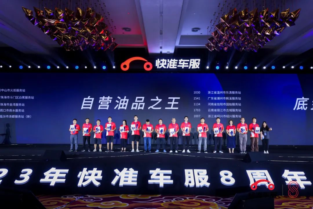 服务站论坛之后,获得TOP100服务站、新站成长服务站、自营油品之王、轮胎之王、底盘之王、自营电池之王、制动之王、杰出贡献服务奖的百余家快准优秀服务站的代表,登上舞台,收获了属于他们的掌声与荣誉。