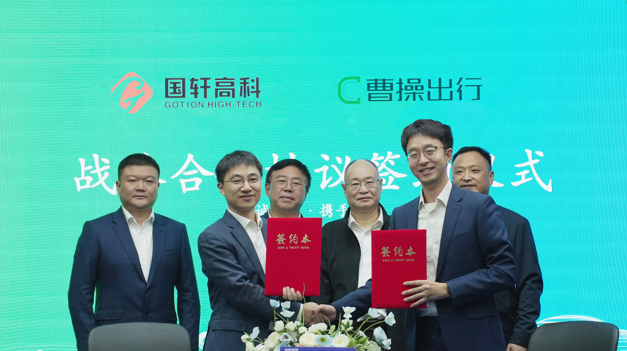 国轩高科董事长李缜(后排左二),吉利控股集团副董事长、曹操出行董事长杨健(后排右二)见证签约