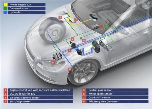 起步-停车系统在汽车遇红灯停车时关闭发动机,防止空转;而当汽车制动踏板松开、离合器接合时,电池将重新起动发动机。以上措施可有效减少车辆油耗。麻省理工学院等机构去年确认了2015和2020年汽车燃油经济性和排放目标,起-停系统被列为降耗手段之一,能够削减排放8%至15%。