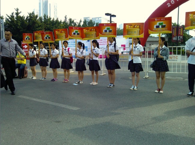 图为开幕式入口处 图为一排“中学时代”式的广告仪仗队