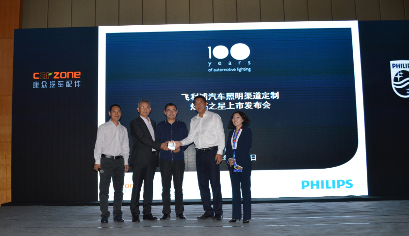 最后发布会在主持人邀请下:飞利浦汽车照明全国销售经理刘竟俊、高级市场经理卢少军、灯具市场经理程鹏、区域销售经理向超;康众汽配连锁总经理商宝国、市场总甘肃分公司总经理谈春林、贵州分公司总经理刘波、上海分公司总经理陈越、副总经理闫海林共同开启炫亮之星上市,为整个发布会推上高潮!