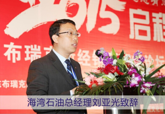 “对于一个企业经营中,面对目标客户多种需求之下,单一的产品线就显得成本过高,营业额难以提升。对于这种现象,刘荣良董事长看在眼里,记在心里,并在一个偶然的机会与我们海湾石油(中国)有限公司中国区负责人相识,得知海湾石油是一家拥有115年历史,全球排名前9的国际知名润滑油品牌,总部位于伦敦,并且拥有51年赛道严苛考验、6届勒芒世界冠军、7届摩托车直线加速赛冠军成绩显赫,并为此重金合作成立青岛联合意顿汽车零部件股份有限公司,为布瑞克斯全国优秀经销商输送润滑油产品。这样一来,经销商在为客户提供滤清器时,又很顺其自然地提供了润滑油产品,是一举多得的商业合作。” 海湾石油(中国)有限公司总经理刘亚光致辞中显得格外喜悦,同时也向大会的成功举办表达了祝贺!